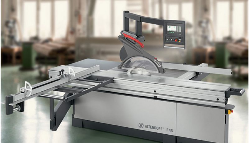 - Motorised rise/fall and tilt adjustment (up to 46° to either side)* for the main saw blade with automatic height correction and digital display